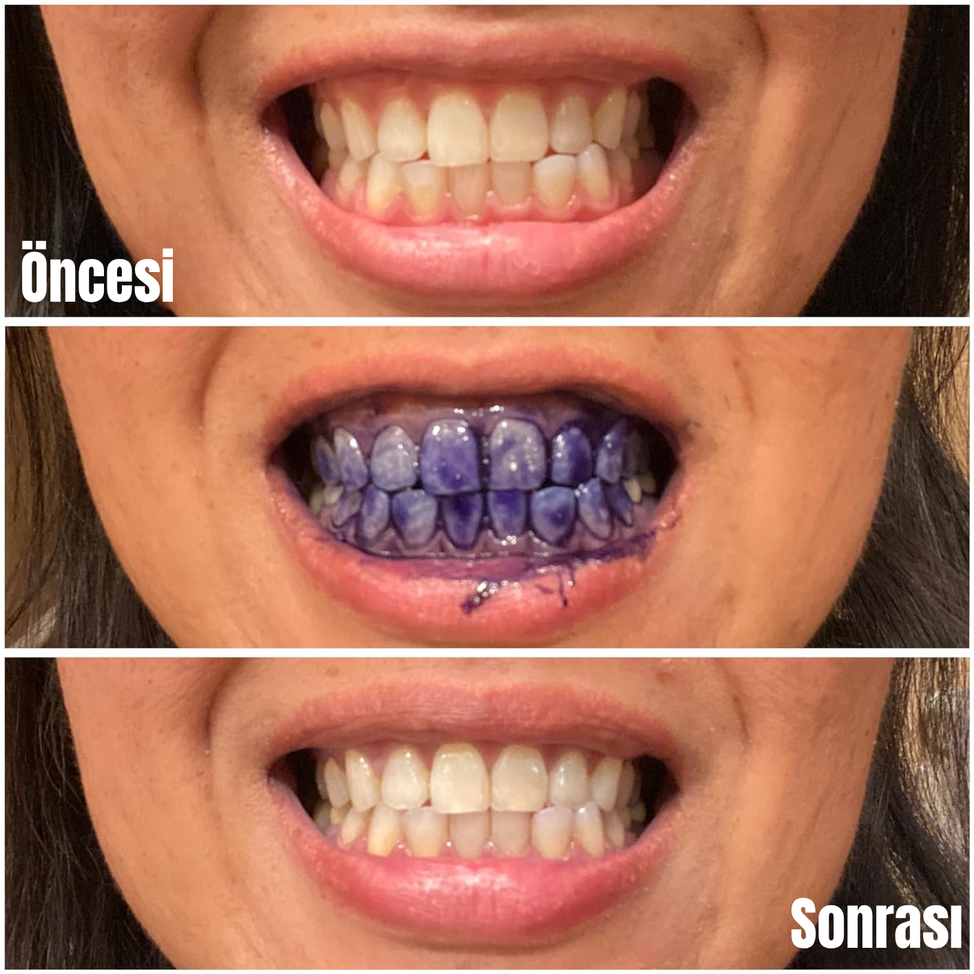 Dişlerinin belirgin şekilde daha beyaz göründüğünü söyledi.